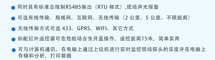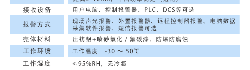 現場聲光報警、外置報警器、遠程控制器報警、電腦數據采集軟件報警、短信報警可選 |