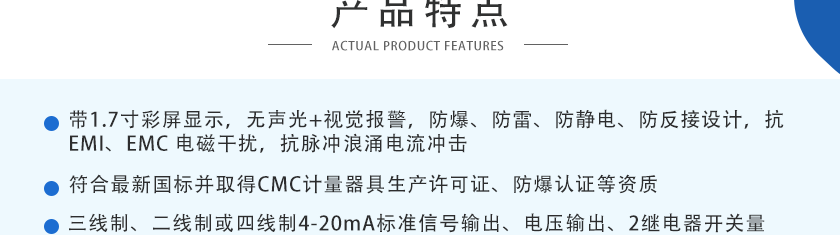 ①4-20mA信號:傳輸距離1Km ②RS485信號:傳輸距離2Km |