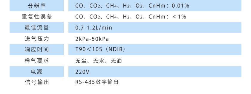 CO、CO2、CH4、CnHm:≤±1%FS