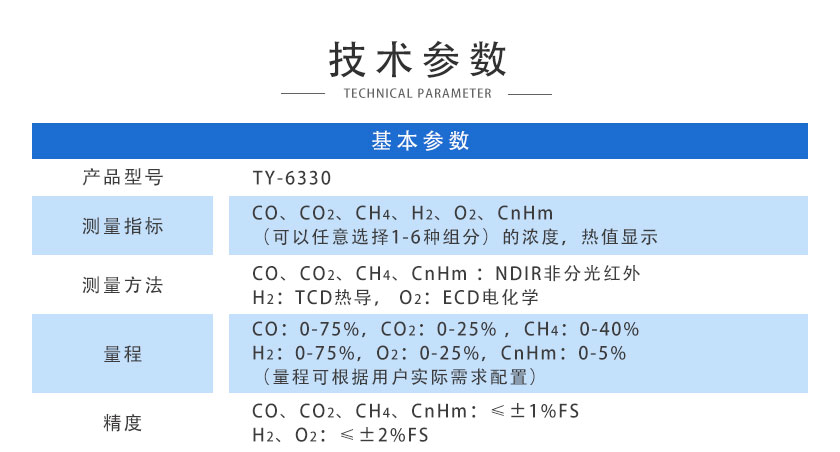 CO:0-75%,CO2:0-25% ,CH4:0-40%,H2:0-75%,O2:0-25%,CnHm:0-5%