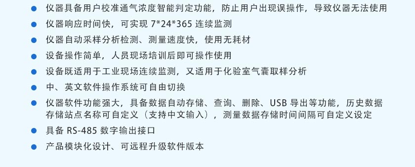 (9)儀器響應(yīng)時(shí)間快,可實(shí)現(xiàn)7*24*365連續(xù)監(jiān)測(cè)。