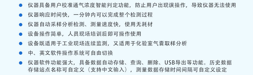 (11)設(shè)備既適用于工業(yè)現(xiàn)場(chǎng)連續(xù)監(jiān)測(cè),又適用于化驗(yàn)室氣囊取樣分析。